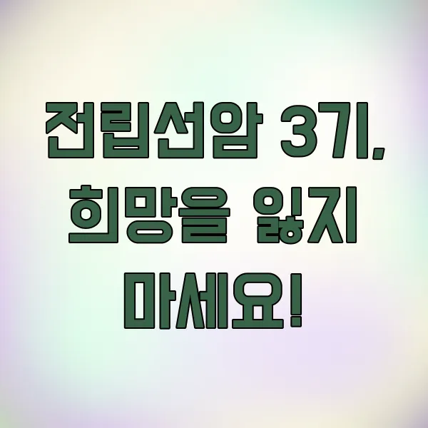 전립선암 3기 진단은 결코 끝이 아니에요. 앞서 말씀드린 것처럼 5년 생존율이 매우 높으며 , 다양한 치료 옵션과 의학 발전 덕분에 많은 분들이 완치에 가까운 결과를 얻고 계신답니다. 중요한 것은 정확한 정보를 바탕으로 희망을 잃지 않고 적극적으로 치료에 임하는 자세예요.
